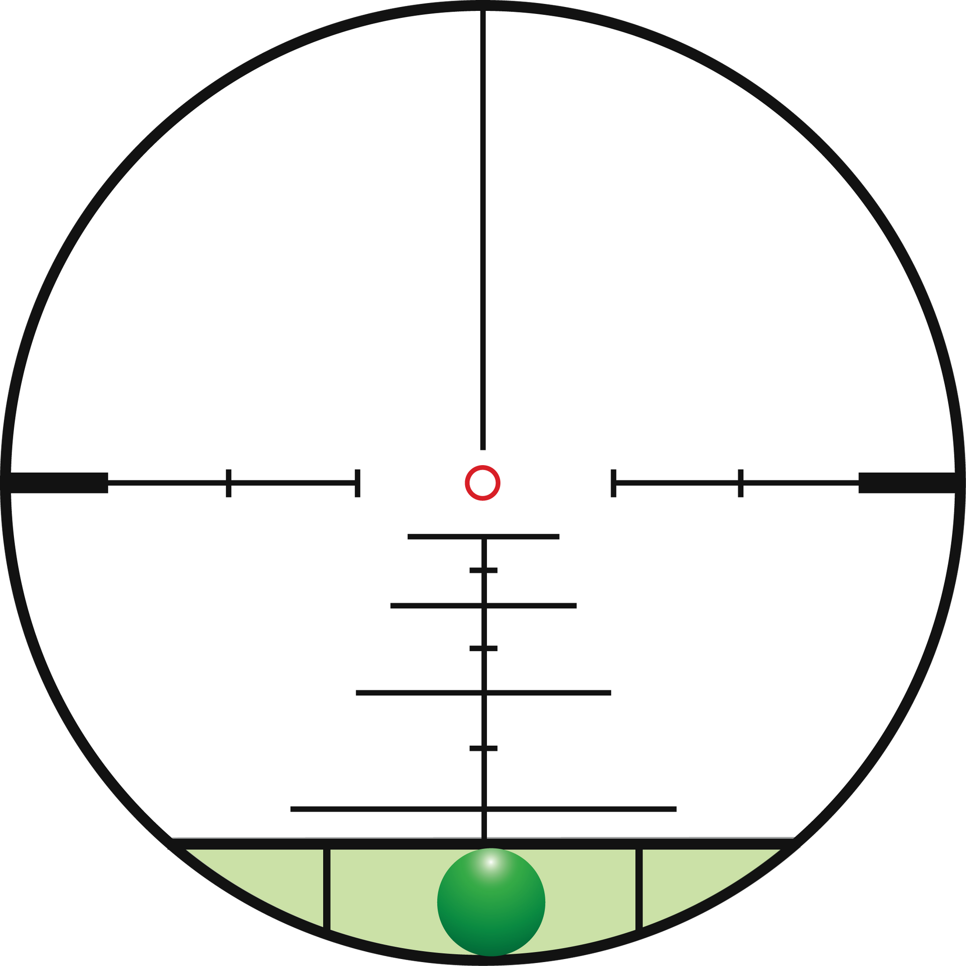 – 550 BALLISTIC ENGRAVED RETICLE WITH RED/BLUE ILLUMINATED CIRCLE